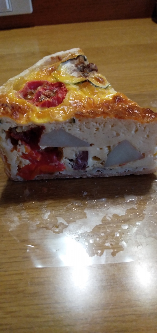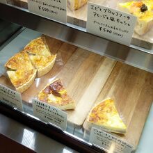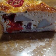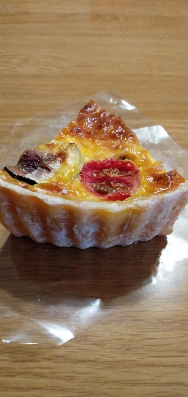 アイドルタイムで持ち帰りのみでしたのでキッシュを購入しました。6種ほど有りましたがドライソーセージとトマトのキッシュを選択。プチトマトが好い存在感出してる軽い目のあっさりキッシュでした。小ぶりで厚底なお品、でした。