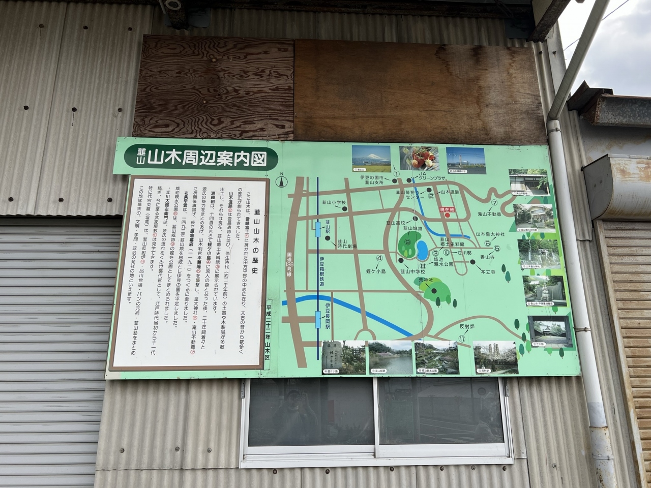 現地には、「韮山山木周辺案内図」という大きなマップが掲示され、山木遺跡の記載はありましたが、山木遺跡と記されているところは畑があるだけでした。