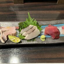 海鮮を中心とした美味しい地物料理をいただける居酒屋で週末は開店から多くのお客さんで繁盛していました。カウンター席があるので、ひとりでも入りやすいですが、人気店なので予約がベターです。ポーションが小さく、1人でも頼みやすいですが、そうなると少し割高かな思いました。お魚はどれも美味しく、新鮮でした。お酒二杯とお刺身、おばんざいの盛り合わせ、天ぷらの盛り合わせと頼んだら5,000円ぐらいになってしまいました。