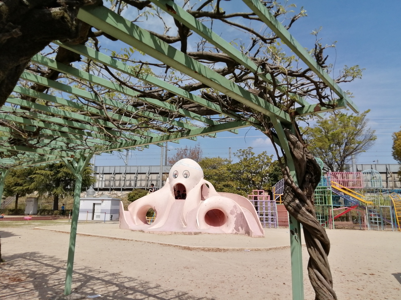 いわゆる“学区の公園”。市民公園レベルではありません。私も“タコ”を見に行きましたが月曜の昼間だというのに子供が結構遊んでる。学校の創立記念日なんか?そもそも創立記念日が休みなのかもわかりませんが…。