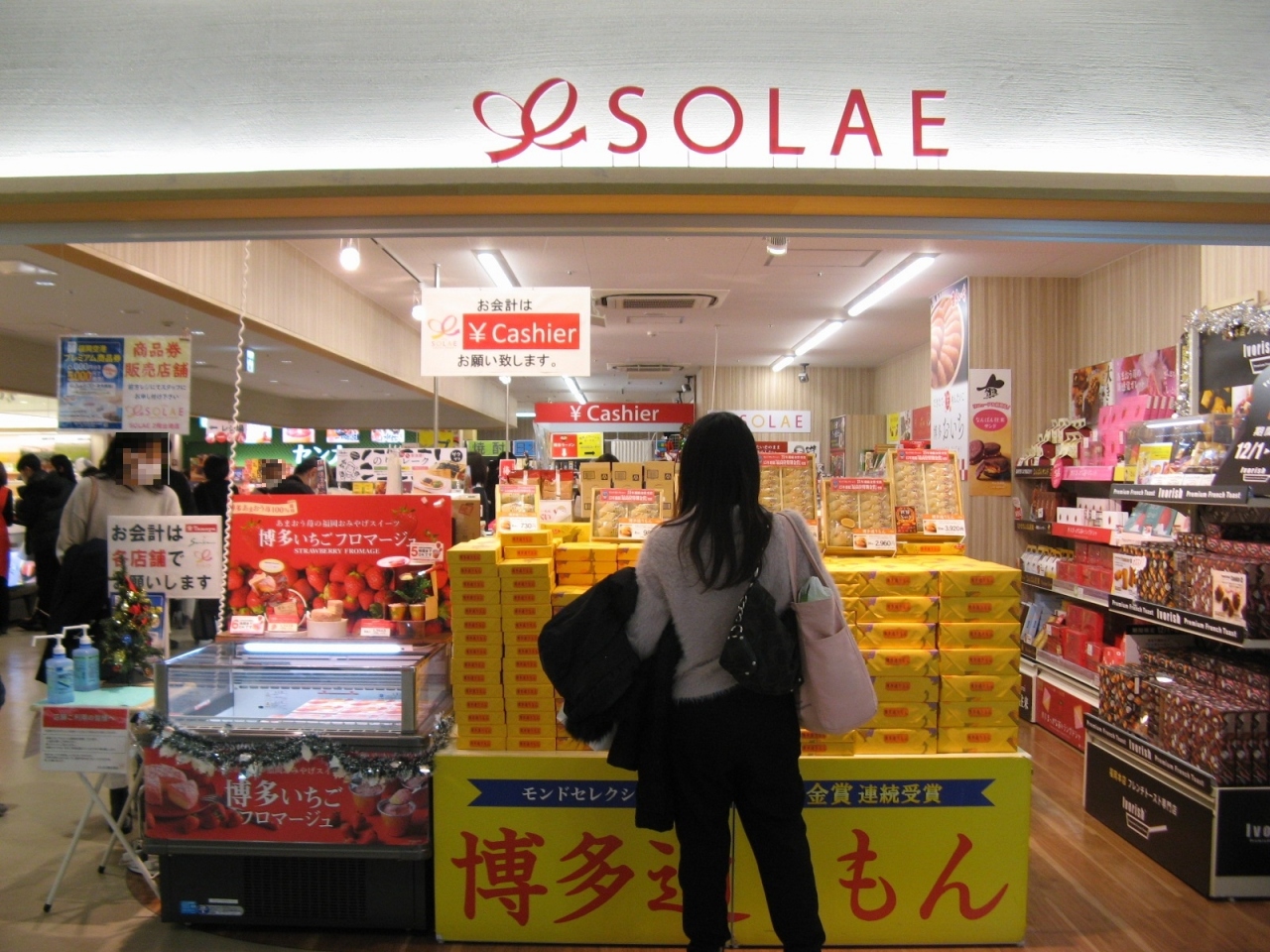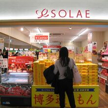 福岡空港の国内線ターミナル2階、4番ゲート近くにあるお土産屋さんです。博多通りもん、めんべい、明太子、豚骨ラーメン、馬刺し、焼酎など福岡の人気土産が一通りそろっています。出発ゲートからも近くて、帰りがけにお土産を買うのに便利なところです。