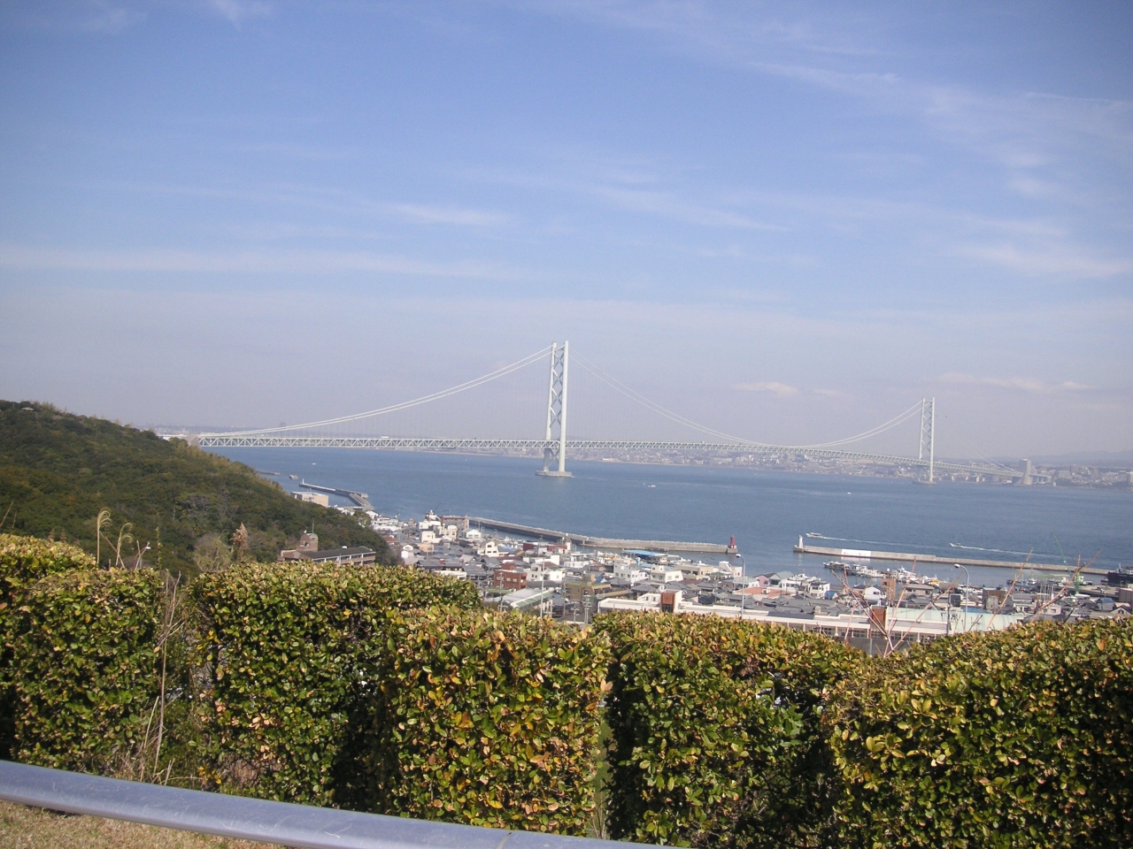 淡路島へは毎月1回車で出かけますが、大橋を渡って最初のサービスエリアですが、自宅から近いため、めったに立ち寄りませんが、今日は天気が良くて、絶景の明石海峡大橋を眺めるために立ち寄りました。ひところに比べ観光客も増えて、土産物売り場コーナーも人であふれてました。質素に小さなおやつを買って橋を眺めました。