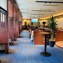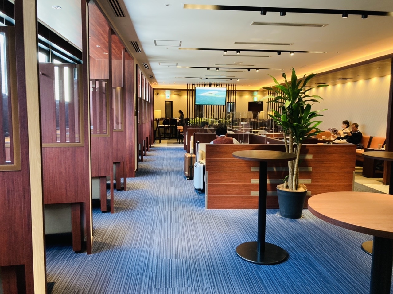 入ると左右で分かれておりどちらにも同じようにドリンクコーナーと座席があります。半個室のようなコーナーやファミレスみたいな4人は座れそうな座席など種類がたくさんあり、羽田のラウンジより居心地が良いです。電話や会議などで話す時に使えるブースもあり、全体的にビジネスマンの仕事もはかどりそうな環境でした。