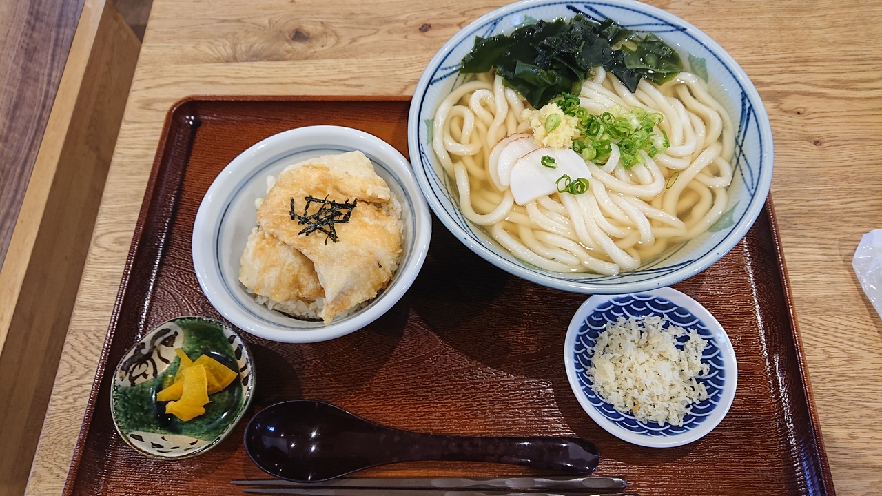 安城市役所近くのうどん屋さんです。4月後半の平日のお昼過ぎに訪問しました。そして、「かけうどん」と、ミニ丼の「鳥天丼」をセット注文しました。鳥天丼の鳥天が、柔らかな食感かつ、肉厚で、特においしくいただけました。