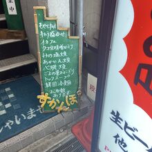 空堀商店街の中にある韓国料理のお店『すかんぽ』さんです。2階にあるので、お店の範囲が分からないので、前を通っていたのに、中々入店できませんでしたが、1階にメニューの書いた看板が置いてあったので、少し安心しました。お疲れセット1,000円は、お得ですね。