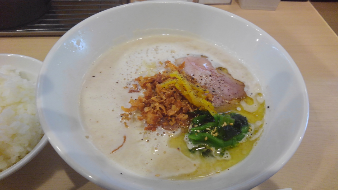 店長が変わって鶏塩ラーメンがなくなったのは残念。ブラックは前と味が違うなというわけで真鯛白湯850円。真鯛の出汁がしっかり出て好感。チャーシューがペラペラのハムみたいなのはいただけない。