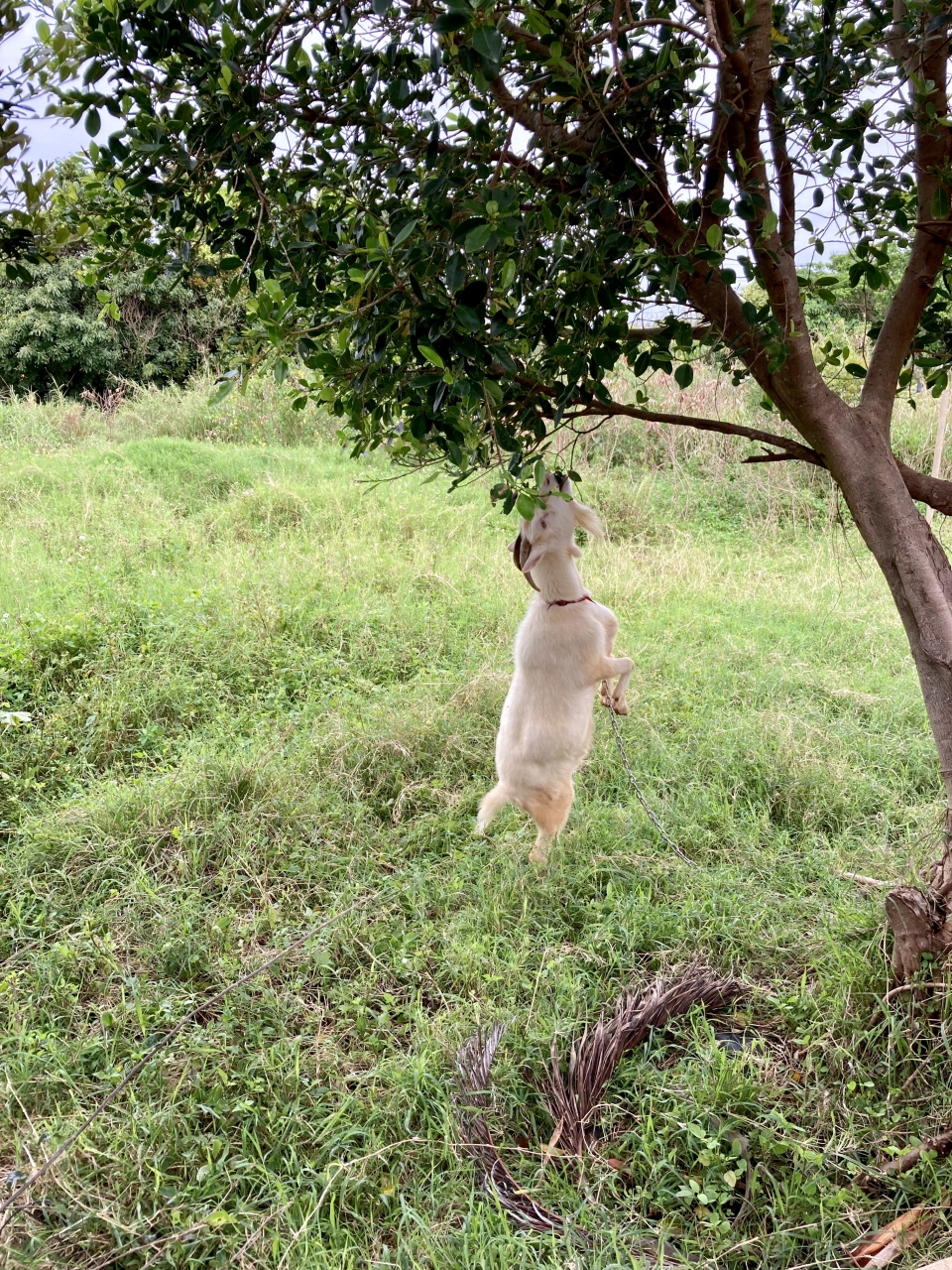 カフェの裏側に人が集まっていたので覗いてみたら、なんと、ヤギさんが2本足で立って木の葉を食べていました。お客さんたちは皆さん写真を撮っていました。客寄せパンダならぬ客寄せヤギ?