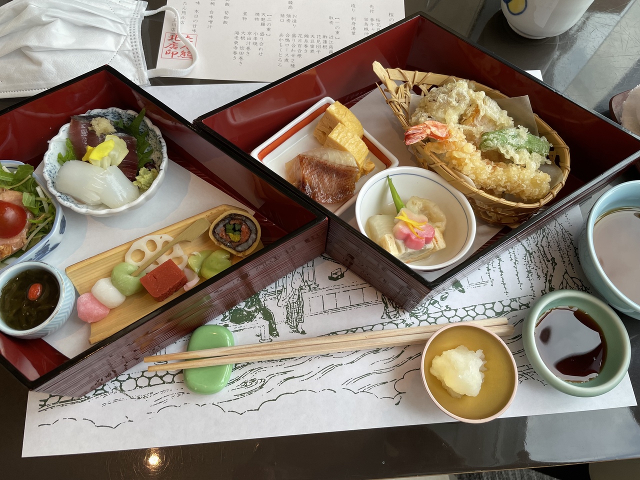 10年以上ぶりにたん熊のランチをいただきました。前回は個室でしたが、今回はテーブル席でした。アクリル板もあり、コロナ対策にはとても良いですが、声が聞き取りにくい点もあります。全6品の会席弁当は彩りも綺麗で楽しめました。