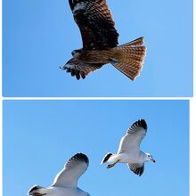 カモメのエサのかっぱえびせんをあげてる人もいましたが、それよりも攻撃的な飛び方をするとんびがめっちゃ怖かったです! 鳴き声はあんなにカワイイのにね…。