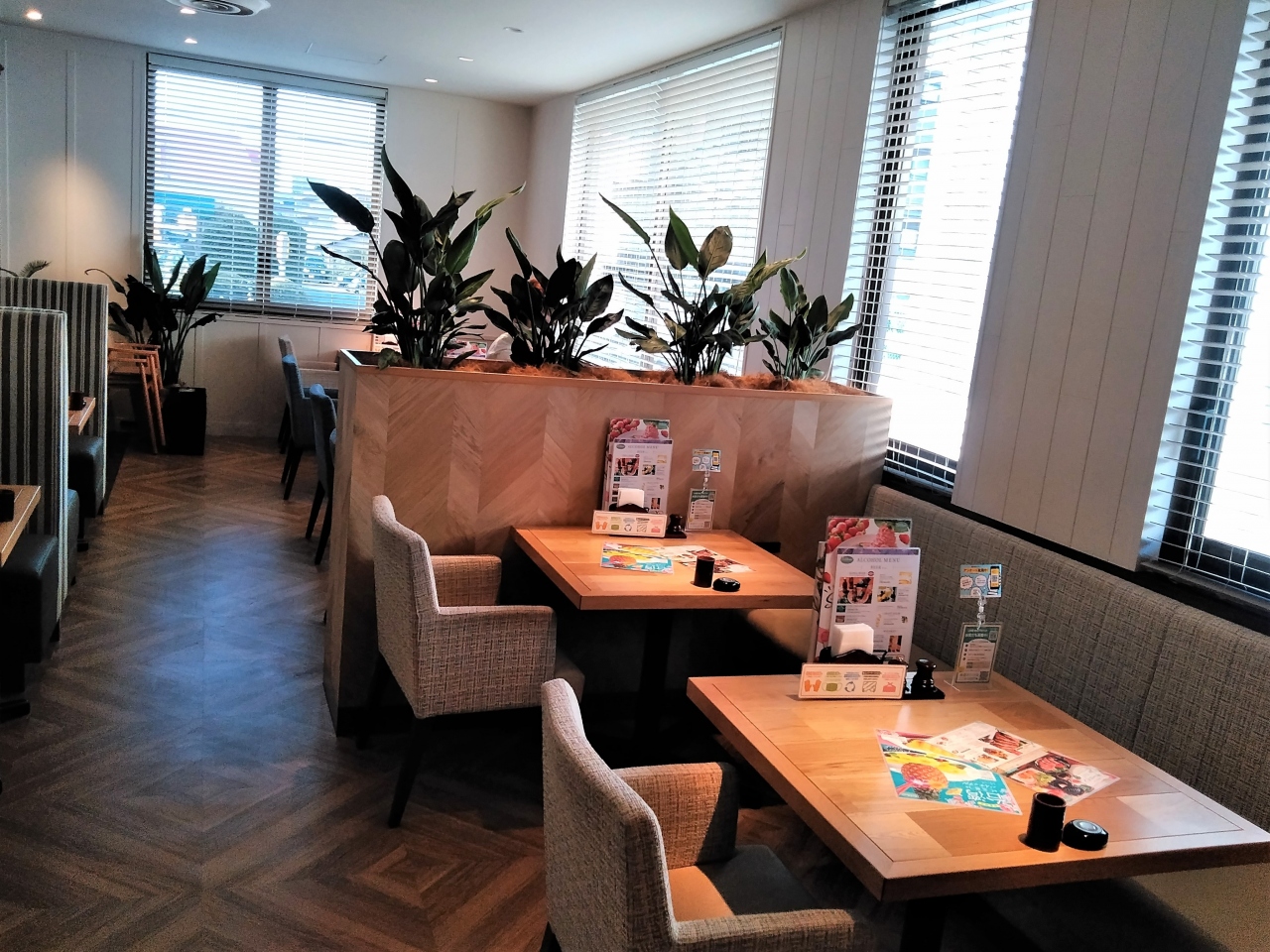 4人掛けテーブルや6人掛けテーブルが多く、その間もゆったりしているし、仕切りのある部分もあるし。コロナ対策は安心しました。雰囲気も良いですy。