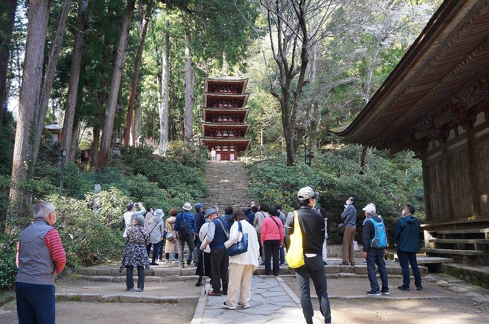 2022年4月6日(水)にレンタカーで訪れました。枝垂れ桜が満開の大野寺の後で訪れたので、大野寺に比べると桜が少なく、物足りなく感じました。ここには国宝で屋外にある日本最小の五重塔があり、多くの観光客が訪れていました。塔のそばにはシャクナゲの花がもうすぐ咲きそうなくらい大きなつぼみをつけていました。おそらく連休頃に見頃をむかえるのではと思われます。桜の季節よりもシャクナゲの季節に訪れた方がいいかも知れません。