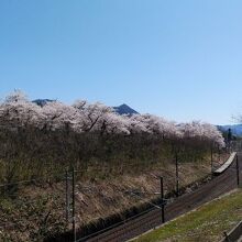 奥羽本線(山形線)茂吉記念館前駅からすぐのところにある公園。茂吉記念館までの150メートルほどの散策路には桜並木があり、満開時は桜のトンネルのようになっていた。範囲は広くないものの、ちょっとした桜鑑賞にはちょうど良く、観光客もそれほど多くは無く落ち着いていた。途中芝生広場があり、こちらで花見鑑賞をしている姿が見られた。