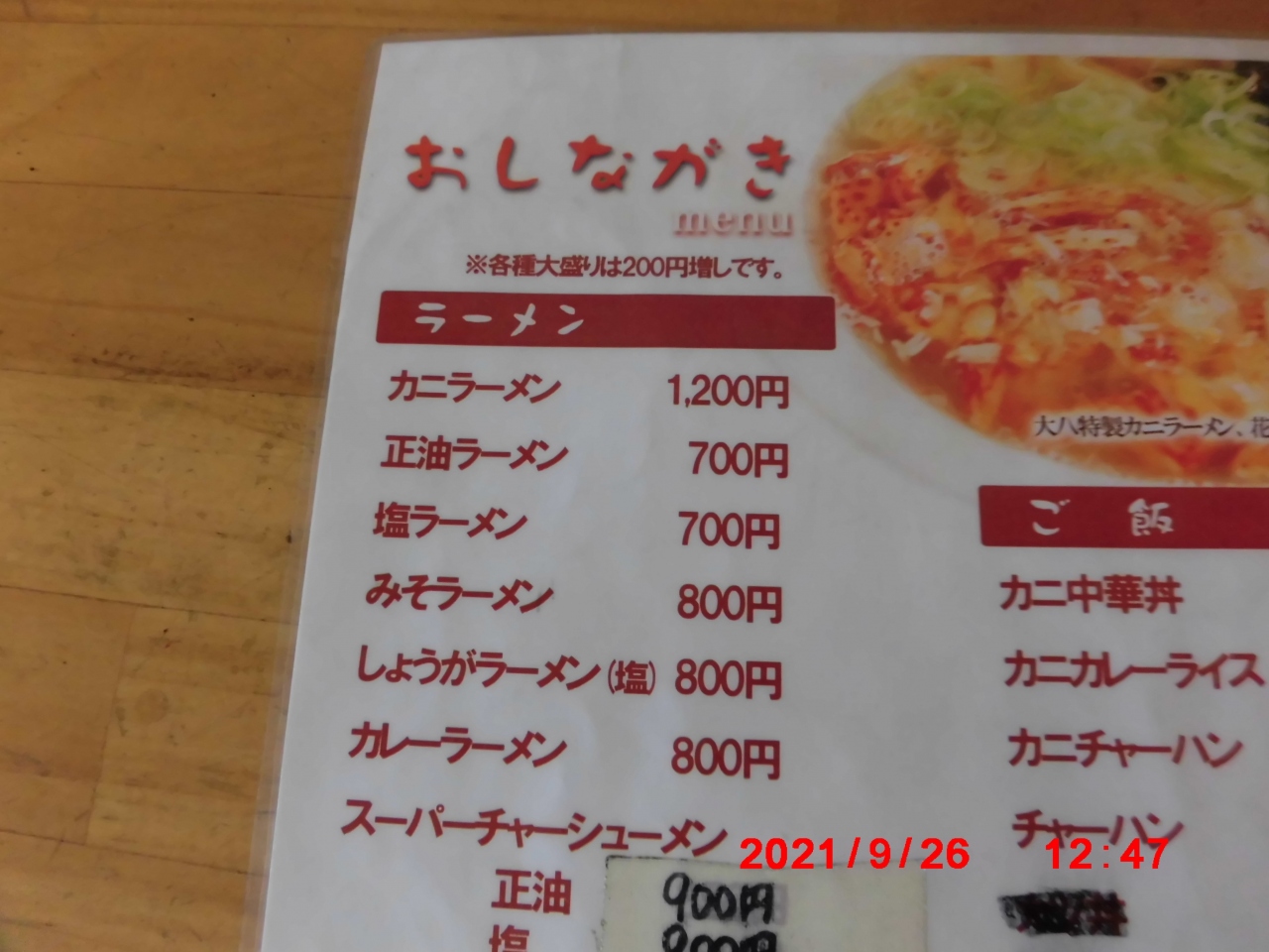 根室市観光で立ち寄りました。花咲港見学に行った時のお昼ご飯を探していて「美味苑」さんがお休みで、その少し東にある「大八食堂」さんは営業していたので入ってみました。有名なのは「カニラーメン」みたいだったので、早速食べてみました。個人的にはコスパは微妙ですが、お客さんお出入りが多くお店は繁盛しているようでした。