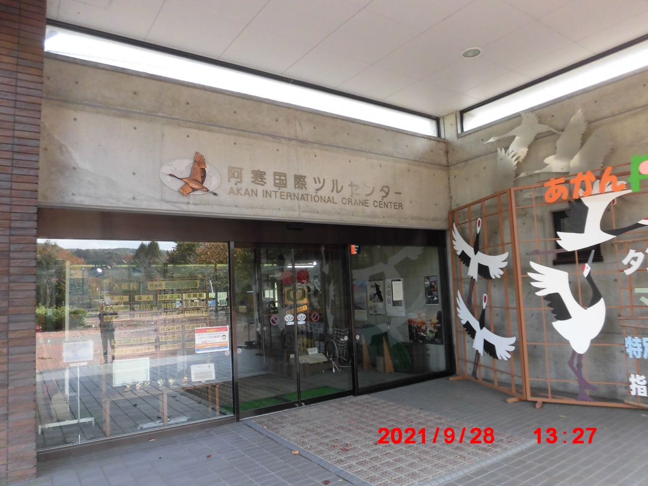 釧路市観光で立ち寄りました。JR釧路駅前の釧路駅前バスターミナルから阿寒バスで丹頂の里に行きました。阿寒国際ツルセンターは、丹頂の里バス停から道路を挟んで東に3分程の所にあり、鶴に関する資料展示などを見た後、野外飼育場で「マナヅル」や「タンチョウヅル」を見学できました。