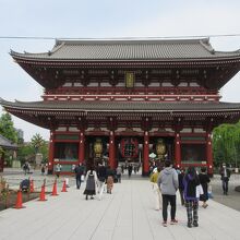 浅草寺の総門にあたる雷門から仲見世商店街を通った先に建つ、浅草寺の山門にあたる朱色の門です。昭和39年に浅草寺の宝物の収蔵庫として再建され、高さも間口も22mほどある大きな門です。門の中には高さ5.5m、重さ1000㎏ほどの木曾ヒノキで造られた仁王像が祀られ、参詣客を迎えています。雷門同様、巨大な提灯が掛かる立派な門です。