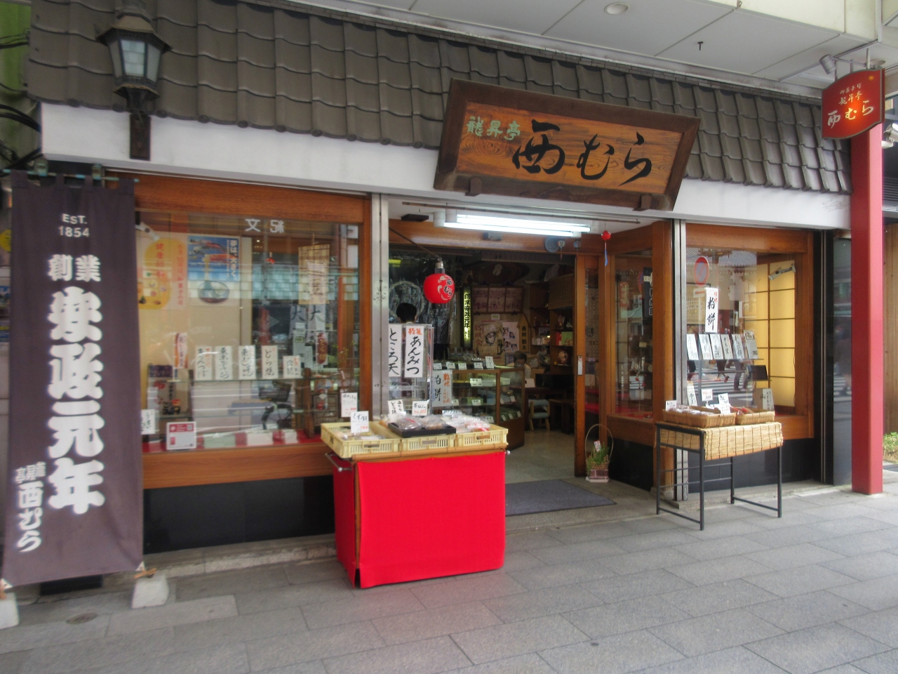 浅草寺雷門の斜め向かいに建つ、1854年創業の老舗和菓子店です。隣に建つ和菓子店・亀十は一日中長い列ができていますが、こちらは店全体が昔の造りになっていて落ち着きが感じられました。看板メニューの栗蒸し羊羹は甘さ控えめですが、甘い栗がたっぷり入っていて、羊羹と栗の甘さのバランスが良くおすすめの一品です。手のひらサイズの大きな金龍と名付けられた桃山やどら焼き、大福なども気になる商品です。冷蔵ケースに入っているあんみつは、オーダーしてから果物や餡を中に入れるこだわりの一品です。亀十の人気に圧倒されますが、老舗の和菓子店もおすすめです。