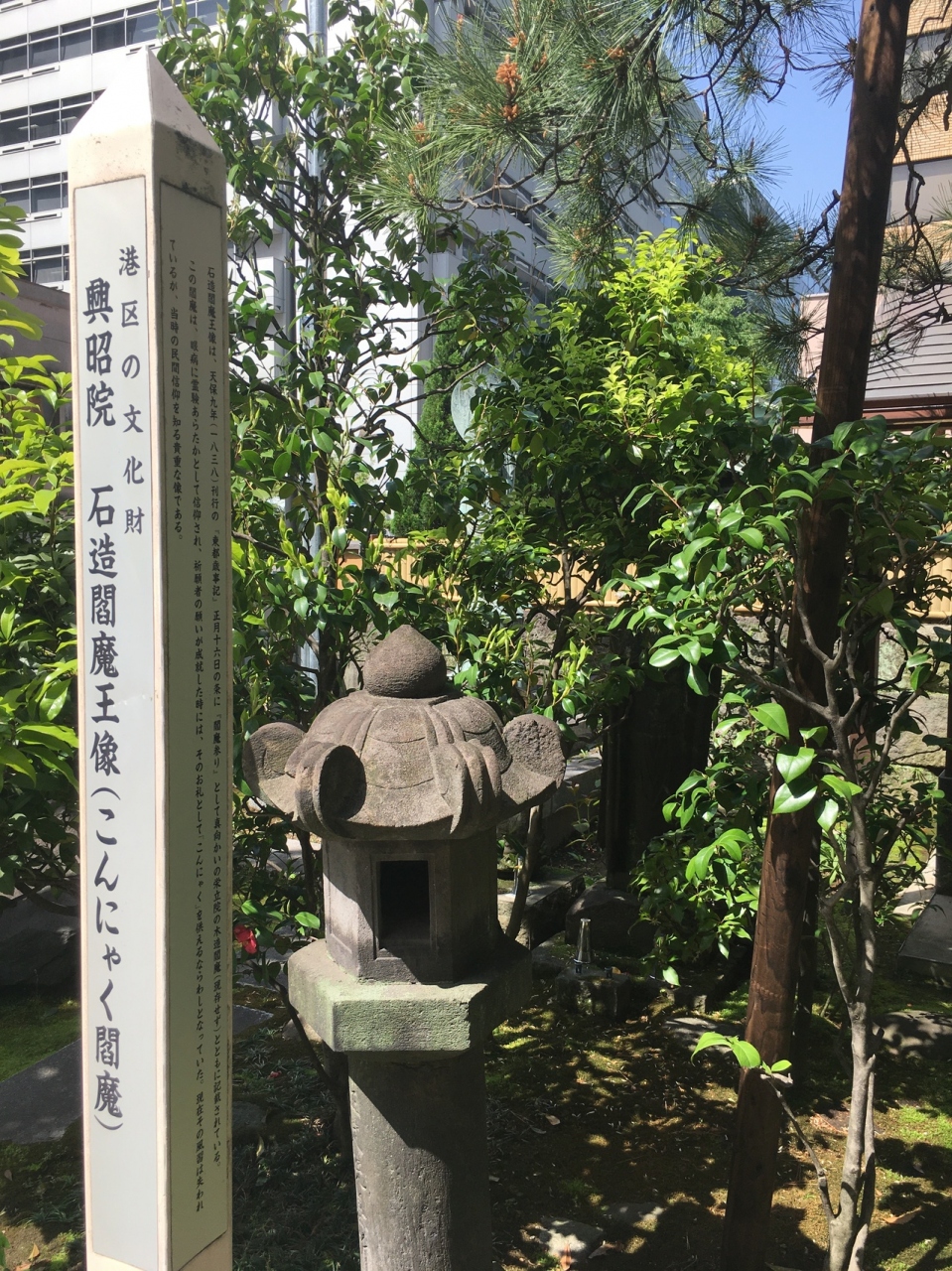 境内入った左側にありました。ポールのようなものがあり、像の説明が記載してありました。小さな建物の中にあり、覗くと長身の像があって赤い前掛けをしていました。風化が見られ顔が平べったくなっていたので、今は建物内にあるようでした。