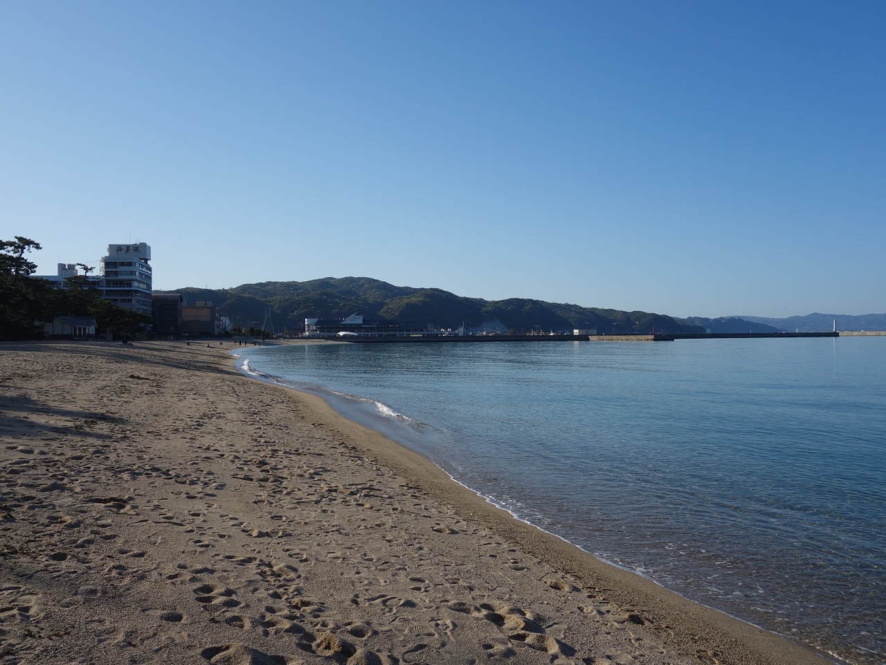 砂浜を歩くのは,砂に足を取られて,大変です。その点,この公園は,舗装した道が砂浜を突き抜けているので,歩くのに苦労しません。洲本市のおかげでしょう。大浜は砂も海もきれいで,眺めもよくて,いいところです。近くの旅館・ホテルに泊まると,ここを楽しく散策できます。洲本はいいところですね。