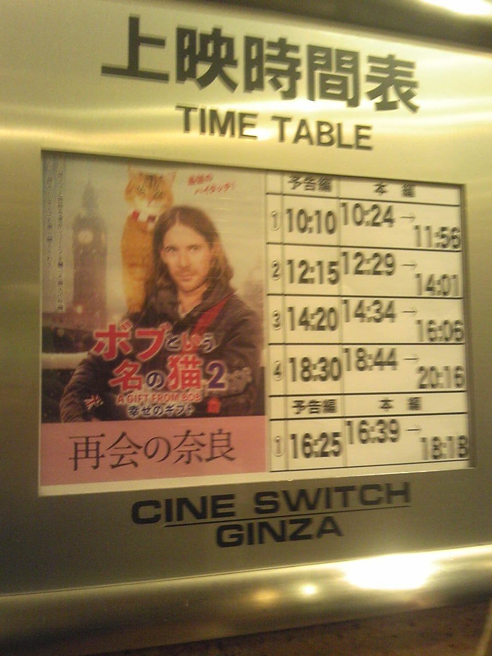 銀座にあるミニシアターで、先日、「ボブという名のストリートキャット」の続編を見てきました。