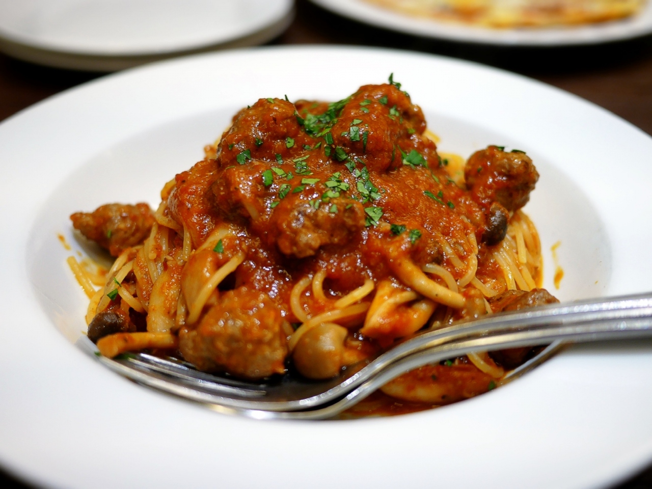 パスタは、やや細めで、トマトソースがたっぷりで美味しかったです。ポルペッティーニ(イタリア風の肉団子)も、ゴロゴロ入っていました。