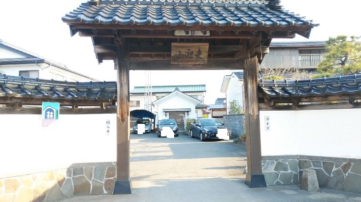 広めの通り沿いに山門が設けられていた。中に入ると駐車場になっており、合理的な土地利用がされていた。正面左側に本堂があり、木造の建物が歴史を感じられた。屋根下の彫刻も立派だと感じた。