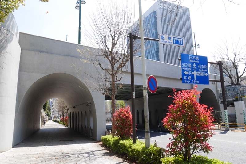 形状がかなり独特の橋です。おそらく、というか確実にはじめてこの橋ができたときから形状が変わっています。それは道路のサインからも見て取ることができます。ふつうの川をまたぐための橋に、道路をまたぐためのパーツを合体させたようなデザイン。全国的に見ても珍しいのではないでしょうか。