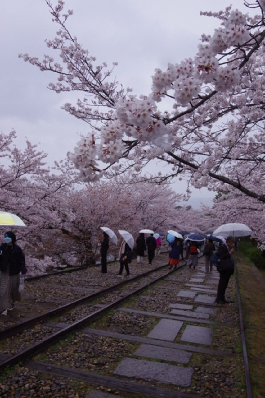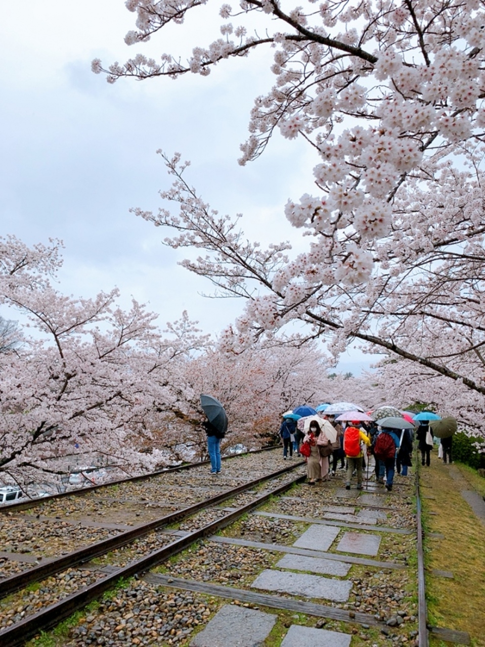 桜が満開の時期に行きました。 雨でも激混み! さすが京都ですね。