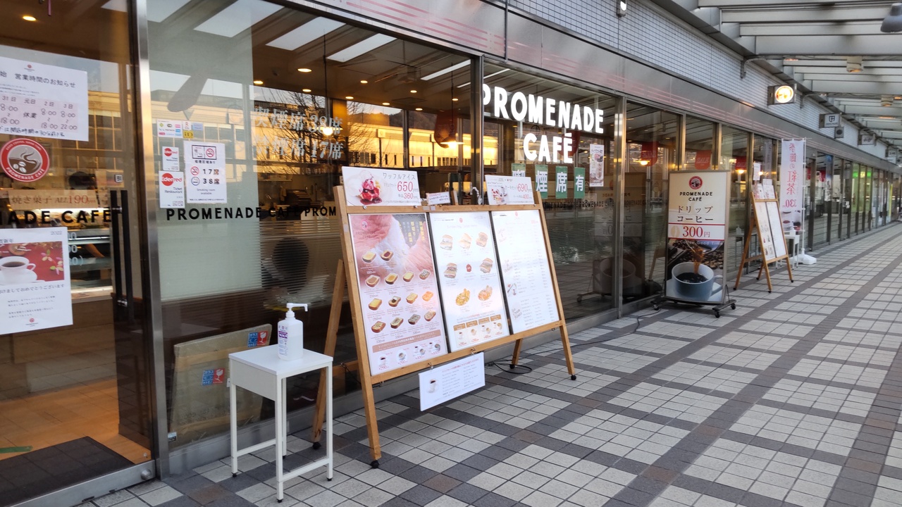 プロムナードカフェ アステ川西店は、阪急川西能勢口駅の近くにあるアステ川西の2Fにあるカフェです。アステ川西で買物をした時の休憩の便利な店舗です。厚切りにカットしたトーストがいろいろとあり、今回は、ピザトーストと珈琲のセットにしました。いろいろなトーストが楽しめます。