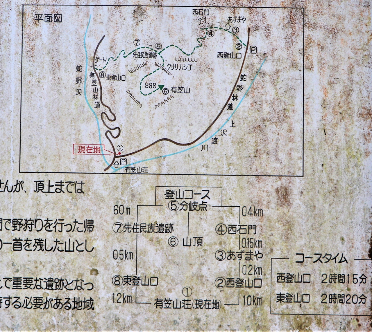 登山口は西口と東口が有りどちらから歩き出しても周遊で2.5時間以内ですが、お勧めは傾斜の緩やかな西口からの登りです。