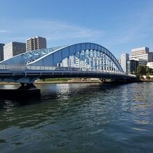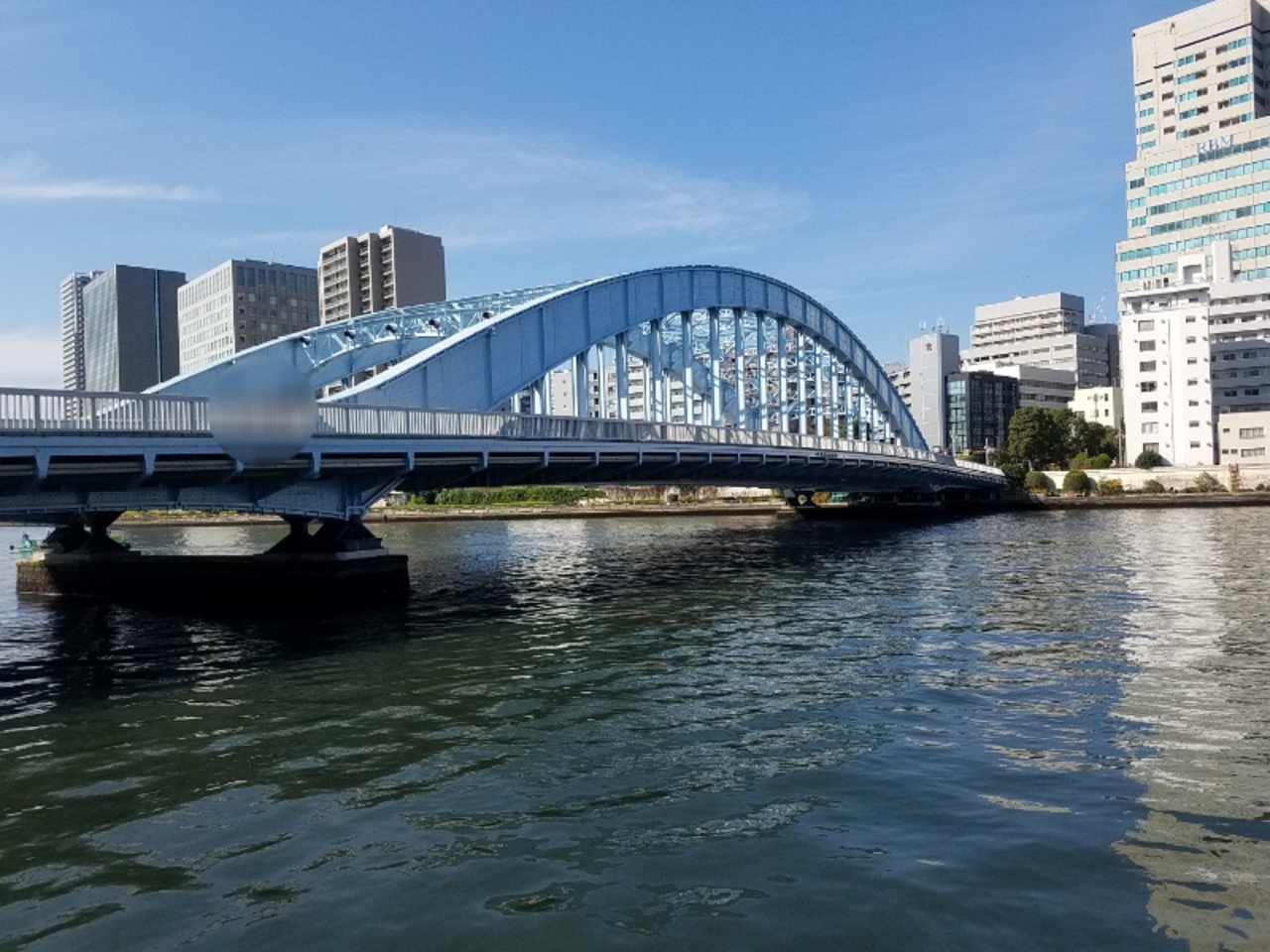 清澄白河の町を散策してから隅田川大橋の辺りで隅田川テラスに出て永代橋まで歩きました。なみなみとした水面とその上を行き交う船を見ながらの散歩は天気が良かったこともあり気持ちがよく、徐々に迫ってくる永代橋の姿は遮るものがないためその美しさを堪能できました。