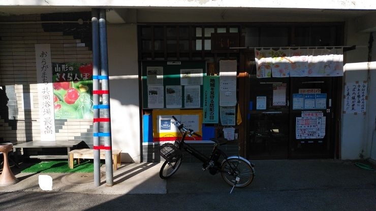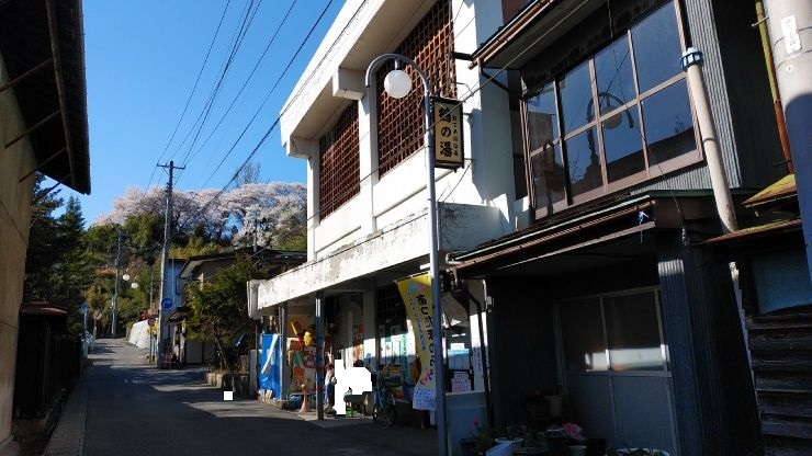 かみのやま温泉駅から徒歩15分くらいのところにある共同浴場。住宅街の細い道沿いにあった。