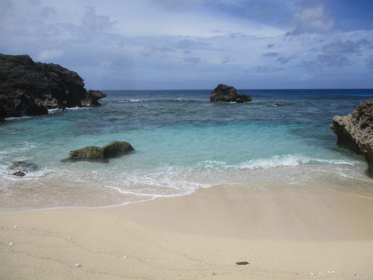 四畳半ビーチは祖納集落北、浦野墓地群のなかにあります。こちらのビーチはおそらく四畳半のように小さいというところから名付けられたものと思われます。真っ白い砂浜と水色濃紺ツートンの海の美しさに、両側が岸壁に囲まれていて、プライベート感のあるビーチでした。