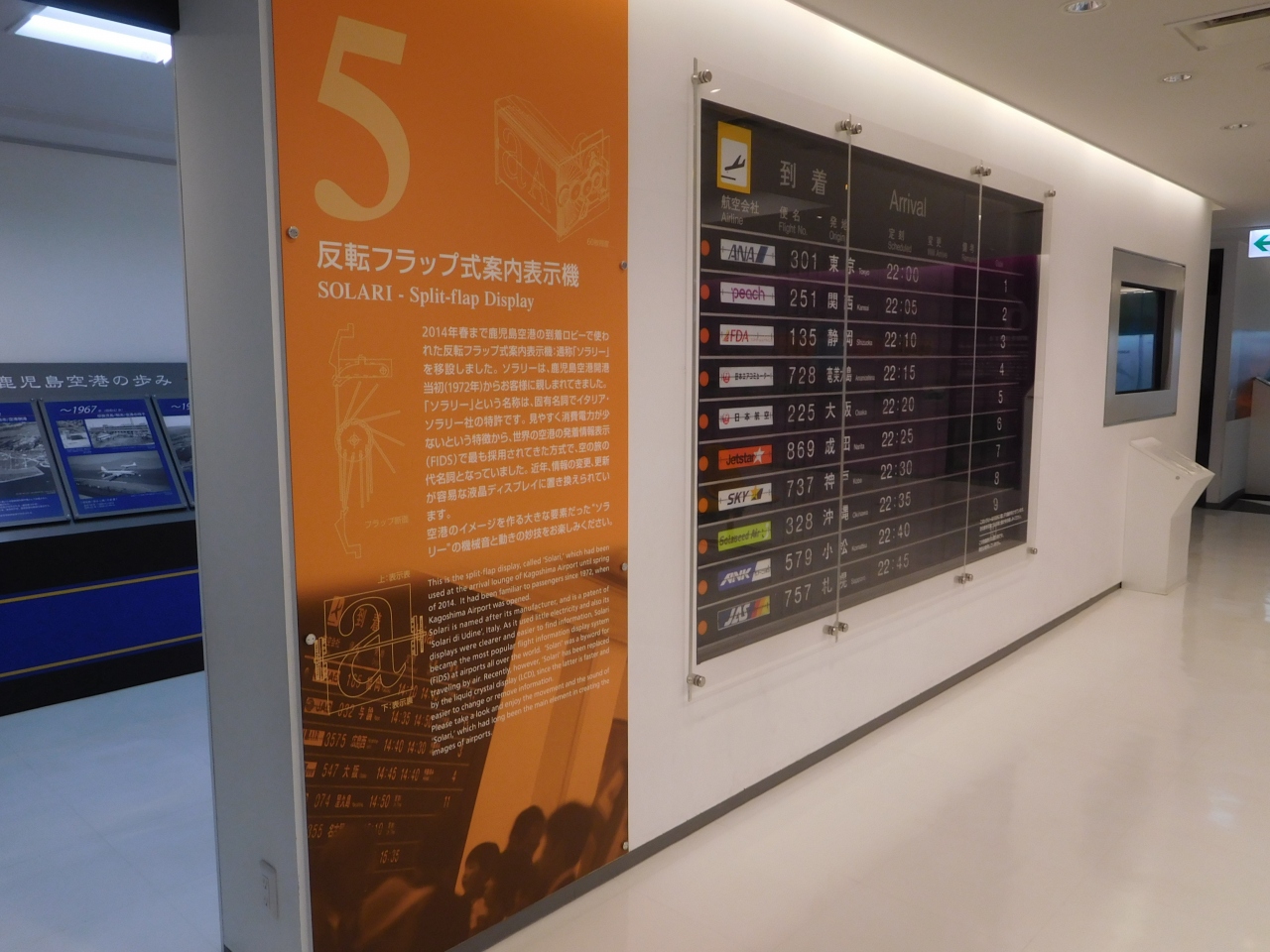 鹿児島空港の3階の南側に、無料で見学出来る「鹿児島空港 航空展示室 SORA STAGE」があり、2階からも入れる入口がありました。鹿児島空港の歴史、世界各国の有名な航空機機体のモデルプレーン展示、実物大のエンジンパーツや機体展示、フライトシュミレーションなど、かなり充実した内容になっていました。子供から大人まで楽しめるような内容になっているので、とても良かったです。