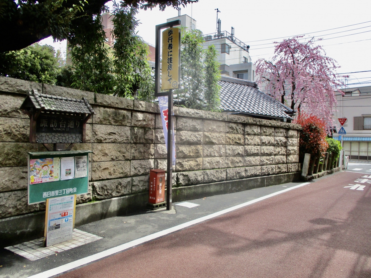 JR日暮里駅から御殿坂をのぼって経王寺をみぎに曲がった通りでした。まっすぐ進むと、左手に、富士見坂があり、かつて、見られた富士山の風景が紹介されています。通りの周辺には、お寺がいくつもあり、寺町通りでした。