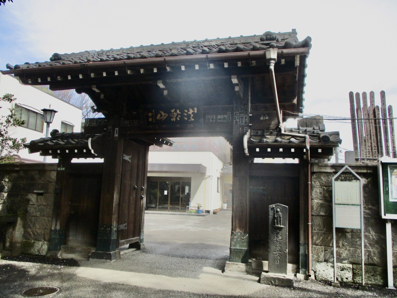 日暮里の寺町散歩をして、諏訪台通りを歩いていたら、諏訪神社の手前にありました。お寺の入り口の門の前には、可愛いお地蔵さんがいました。かつてはここは眺めがよく、雪見に適したことから、雪見寺と呼ばれていたそうです。