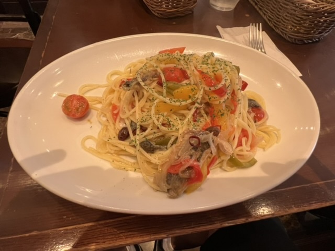 鰯のサオールとプチトマトのペペロンチーノスパゲッティ!