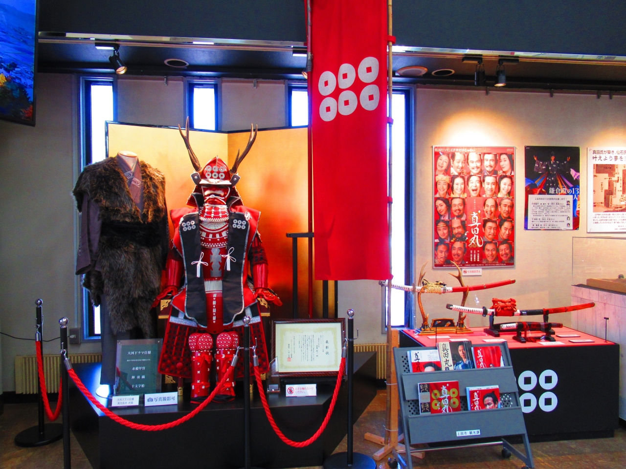 「上田城跡公園」のすぐ近くにあるので、観光の前後に寄るのに便利です。1階はお土産屋で、2階は観光案内所です。2階にはいろいろな展示品があって、大河ドラマ『真田丸』で出演者が実際に身につけた衣装なども展示されています。