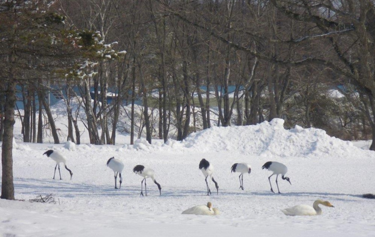 タンチョウヅルというと滅多にお目にかかれない(鶴センターとか施設へ行けば見られますが)イメージですがこちらはあまりにたくさんいすぎてちょっと興ざめしている人もいました^^;