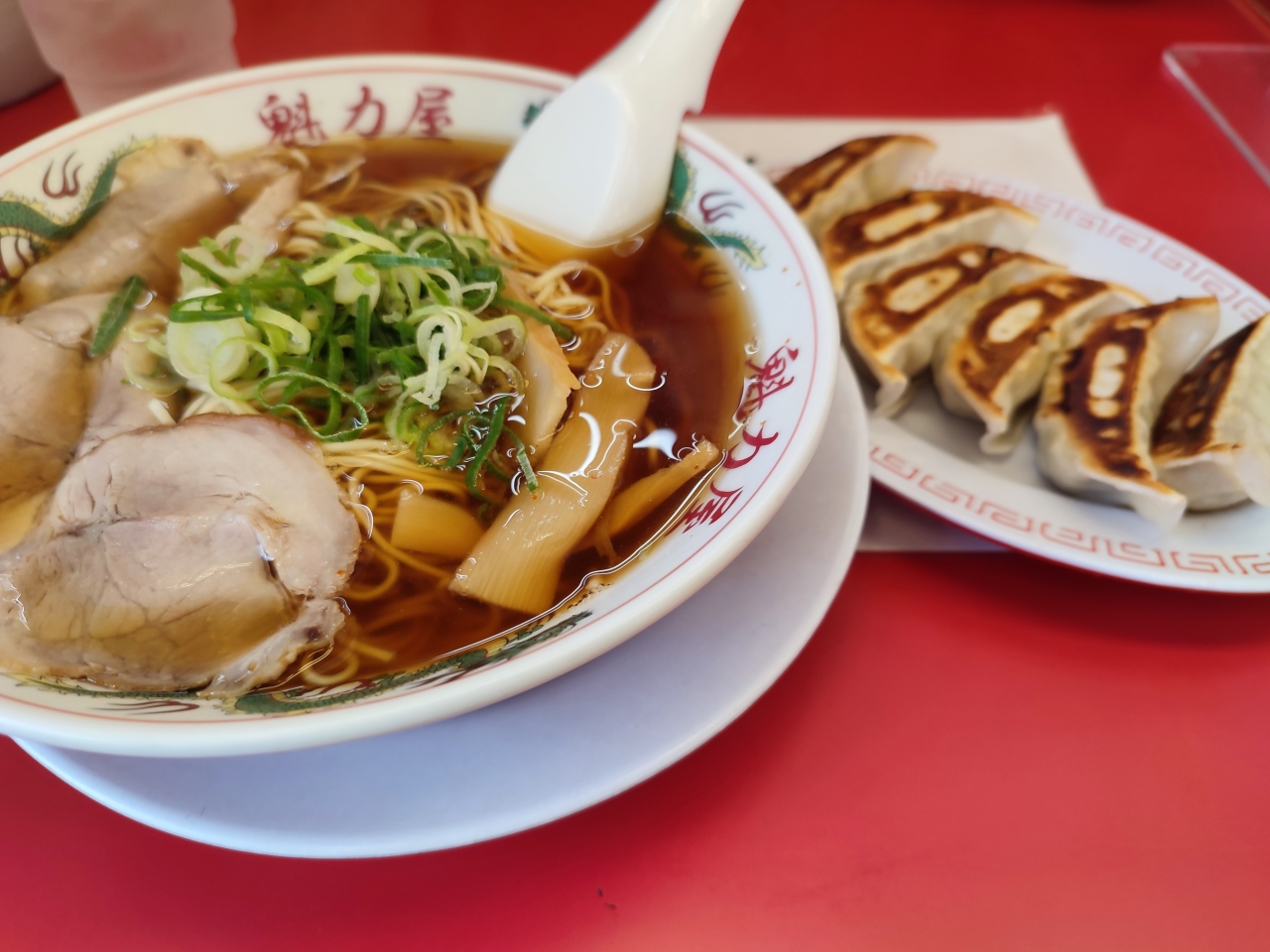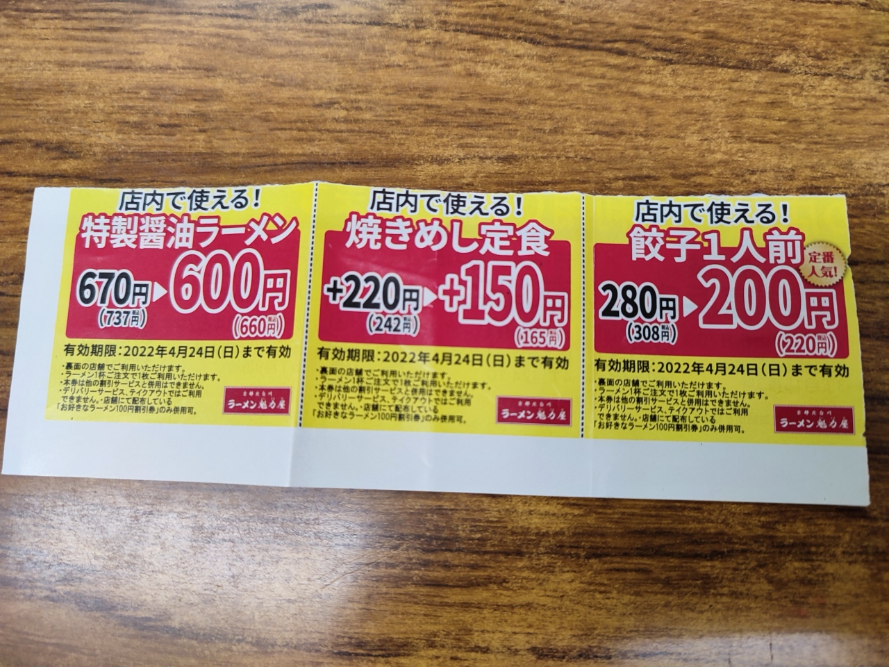 ラーメンと餃子を注文。1,045円のところ957円になった。