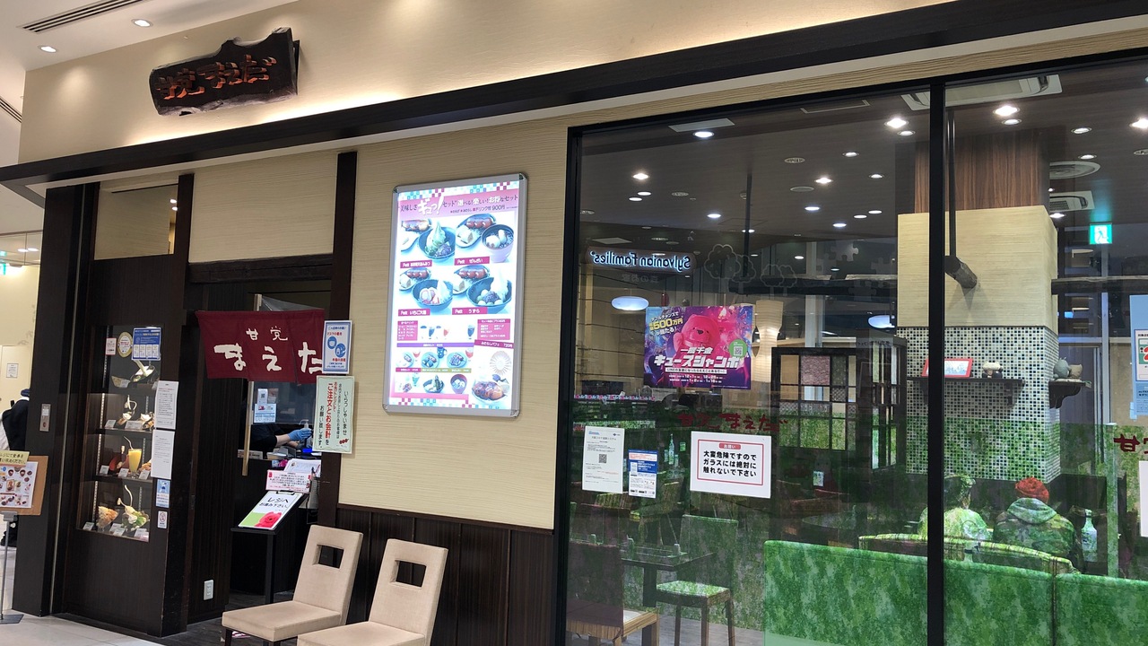甘党まえだは、大阪市内を中心にチェーン展開している甘味処です。小さめの茶屋のような店が多い中、キューズモール店は、広めの店内でゆっくりできます。楕円形のみたらし団子が名物です。パフメニューでも800円ぐらいと、お手頃な値段です。