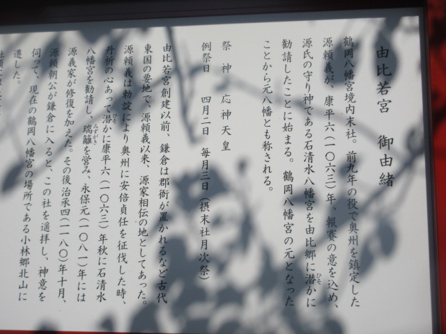 鎌倉の散策で訪問した場所で、少し住宅街の狭い道を通っていくので、少しわかりにくい場所にあります。赤い鳥居の先に境内があります。旗立て松など見所もありました。ここは名前の通り八幡宮の元の場所で、頼朝の前はここにあったそうです。そののち頼朝が今の場所に移したとのことです。
