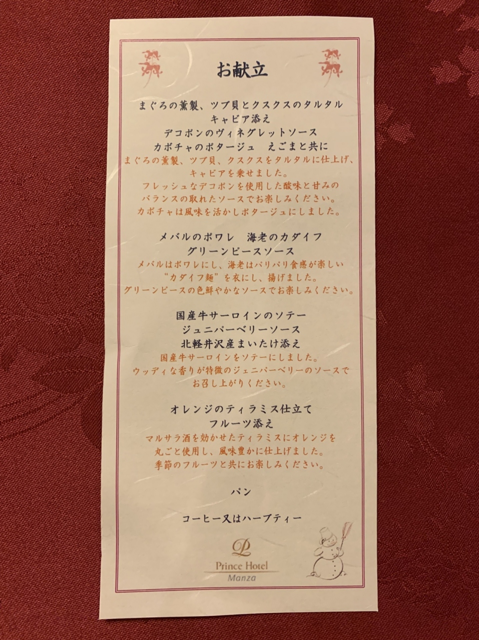 宿泊して夕食に利用しました。うーん、サービスがちょっと~。1か月以上前からお食事付きプランで予約していましたが、なぜかレストラン予約が通ってなかったようで案内にずいぶん待たされました。おまけにカトラリーを素手でやっつけ仕事的な感じでセットされこのご時世、清潔感に欠けました。人間誰しも間違いはあるので、間違いは何とも思いませんがそのあとの対応がまず過ぎます。プリンスと名の付くホテルとは思えませんでした。フレンチのお味も普通で特に美味しいとは思いませんでした。