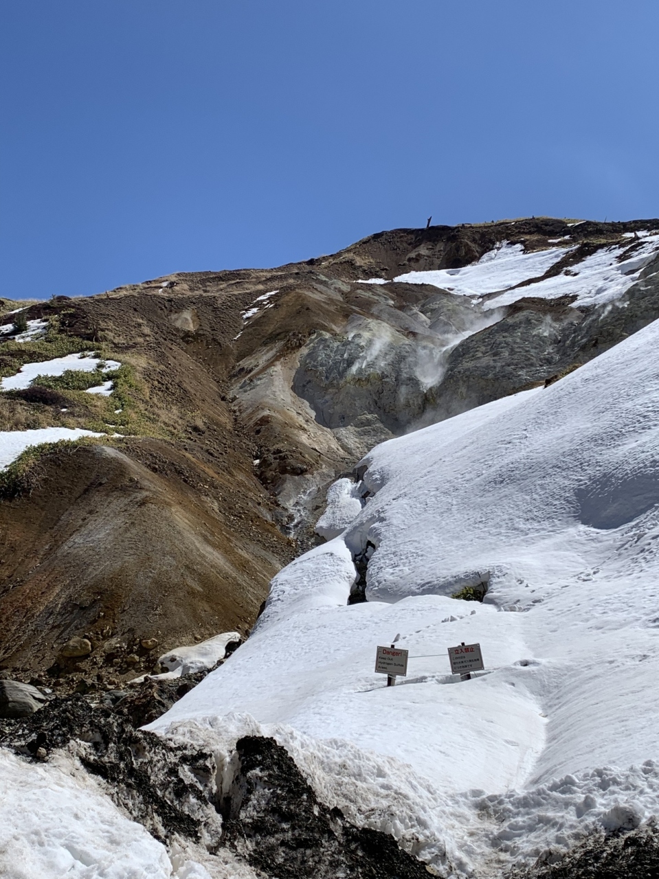 3月15日に行きました。駐車場に車をとめて遠くのほうからすこし煙の吹いた空吹を眺められます。展望台に行く道はまだ雪がたくさん残っていたので閉鎖されていました。そばの川は温泉で白く濁っていて自然を感じられました。