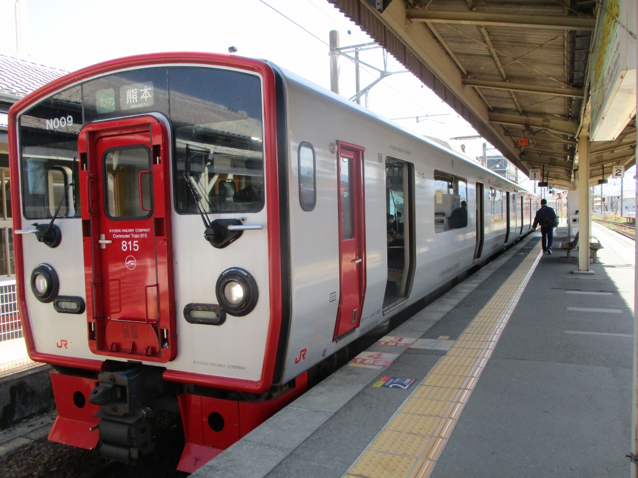 阿蘇くまもと空港から無料の空港ライナーを利用して、肥後大津(阿蘇くまもと空港)駅から熊本駅までこちらの路線に乗車しました。さらにその先の三角線を利用予定で、スイカは使えないので、出発時間を気にしながら、急いでバスを降りた出口と反対側の出口に行って、クレジットカードで乗車券を購入しました。