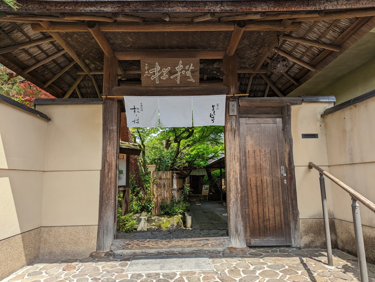 桂川沿いの渡月橋からすぐのところにあるお蕎麦屋さんです。席から渡月橋が見えます。平日に早めの時間に行ったので予約なしでも入れました。おそばはふつうにおいしかったです。天そばをざるとてんぷらで分けて出していただけないかおねがいしたら、こころよくやってくださいました。最後の蕎麦湯に薬味を入れたらおいしかったです。嵐山の雰囲気を楽しみながら、おいしいおそばが食べられます。