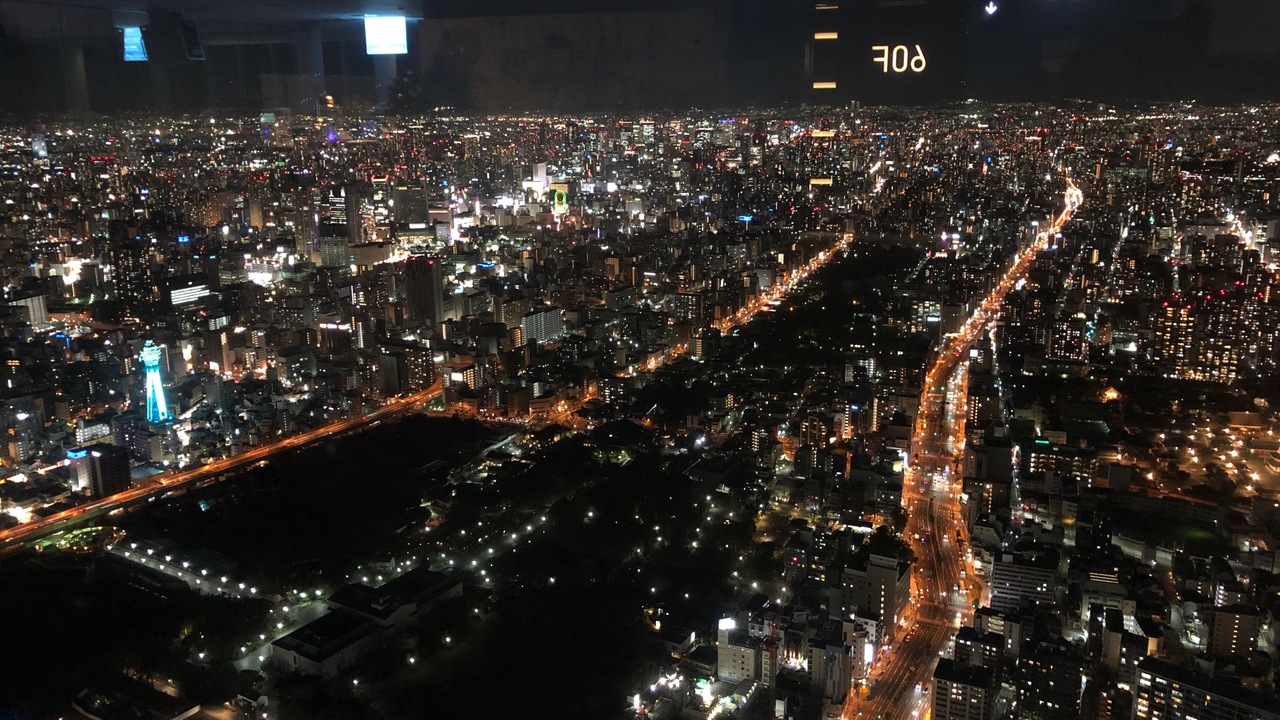 デパートや美術館もありますが、メインフロアは360°の展望フロアです。大阪の街中に建っているので、街の細部が手にとるように眺められます。夜景を見ると、碁盤の目に整備された大阪の町の様子が、よりよく分かります。
