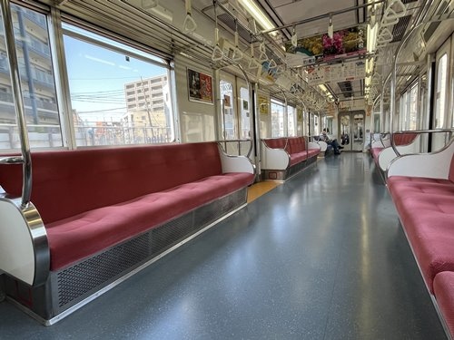 都営線の主力車両5500形はデザインもカラーリングも好みの車両で遭遇すると嬉しくなるのですが、5500形活躍のいっぽうで、旧型の5300形はどんどん引退していき、22年3月時点でもう1編成しか残っていないそうです。そもそも簡単に出会えるとは思わず、先に押上駅から乗車して半蔵門線の18000形(新型でまだ導入編成数が少ない)を撮ろうと運行ダイヤを確認してスカイツリーラインに乗ろうとしたところ、ダイヤ読み取りが不慣れでいきなり乗車してしまいました。目的を達成して今度は浅草線の運行をチェックすると、ちょうど5300形が青砥駅へと進行していて、急いで押上駅に戻って京成押上線に乗りました。5300形が青砥から折り返すタイミングにジャストフィット。基本的ににわか鉄で新車好きなのですが、残り1編成と言われて今回は感激してしまいました。昔はこればっかり乗っていたはずなんですが、そういう知識がまったくなかったので不思議な感覚です。