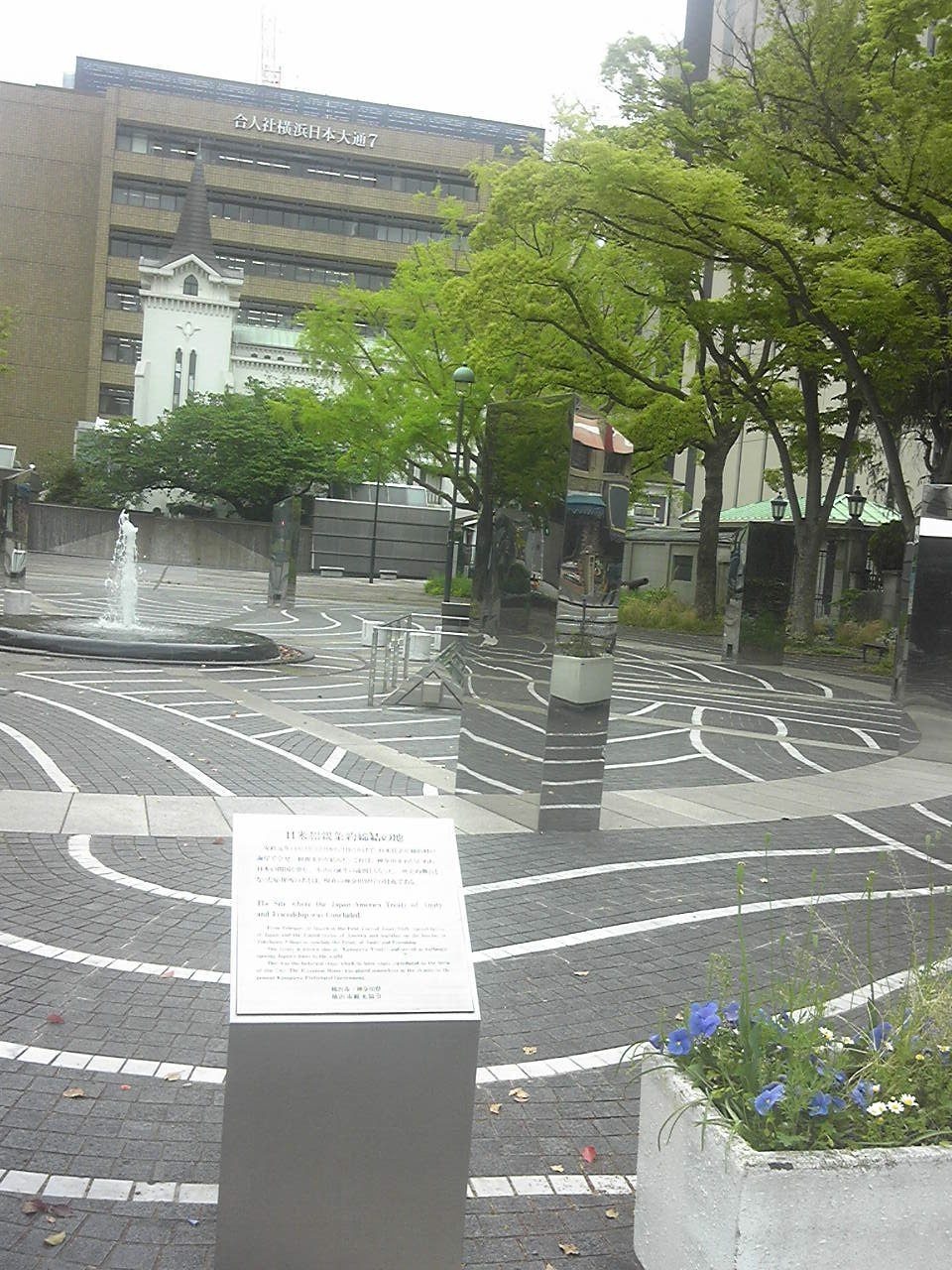 横浜港の開港広場は、シルク博物館の前、大さん橋に向かう未知の交差点にあります。
