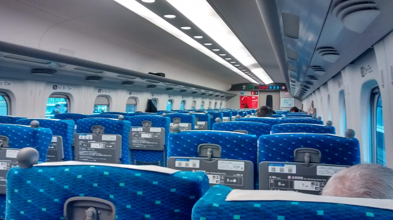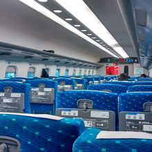 東海道新幹線ののぞみよりひかりをよく利用しますが、昔からお馴染みの、2列+3列の座席編成で、2列の座席のほうがおすすめです。添付写真のように、明るくてクリーンな内装は落ち着いて、日本の列車らしいくつろげるもので最高です。