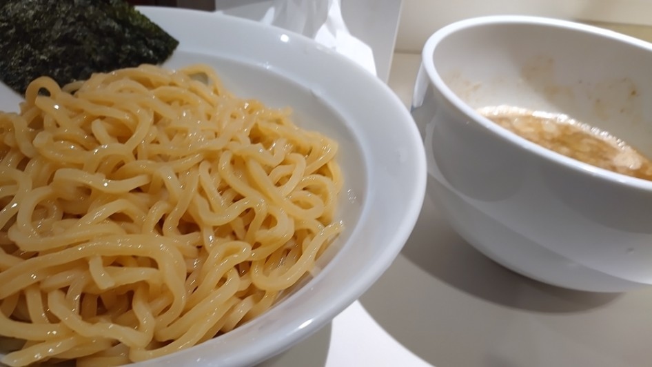 お酒を飲むと棟分が欲しくなるのは人間の性分ですが、そのためカロリーオーバー覚悟で締めのラーメンに行きたくなりますが、ここはつけ麺がメインなので多少はちょうせいできます。太麺に魚介だしがよくあいます。1人で切り盛りされてるようで調理と片付けが大変そうでした